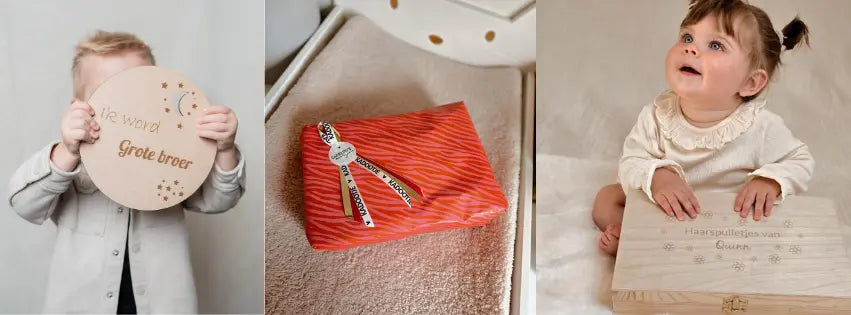 Voor de allerkleinsten vind je bij ons schattige gepersonaliseerde kraamcadeaus en cadeaus voor verjaardagen. Denk aan houten bewaarbundels met naam, herinneringskisten, houten speelauto’s gepersonaliseerd met naam en onze populaire houten tekenkist met naam – duurzaam, stijlvol en persoonlijk.