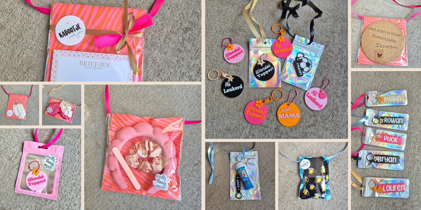 Onze cadeaus worden met zorg gemaakt en zijn eenvoudig te personaliseren met naam, tekst of korte boodschap.