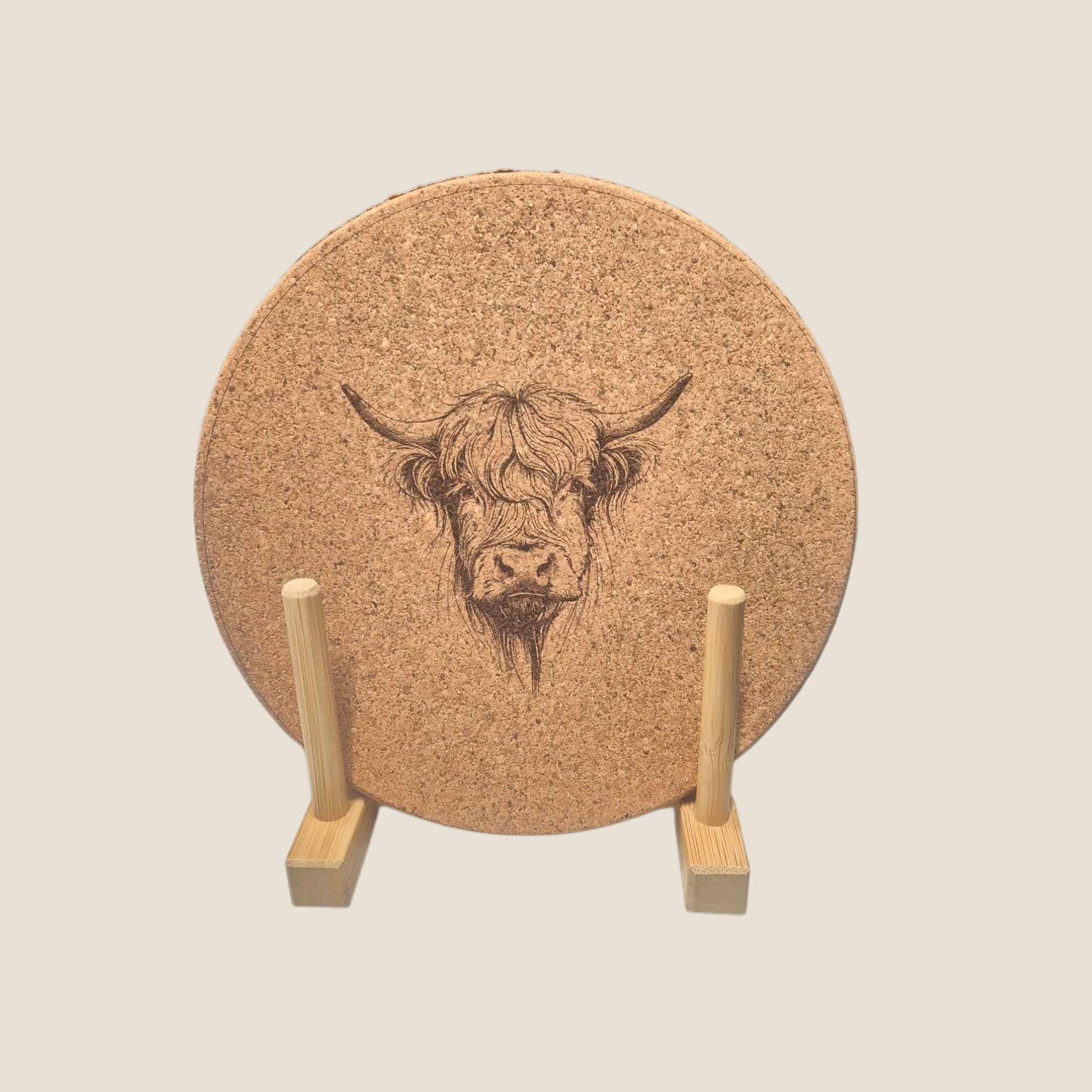 Een echte blikvanger voor aan tafel! Deze kurken panonderzetter met hooglander-print brengt direct sfeer in de keuken. Stoer, landelijk en nét even anders dan een standaard onderzetter. De hooglander zorgt voor die gezellige boerderij vibes, terwijl het kurk je tafel beschermt tegen hete pannen en schalen.